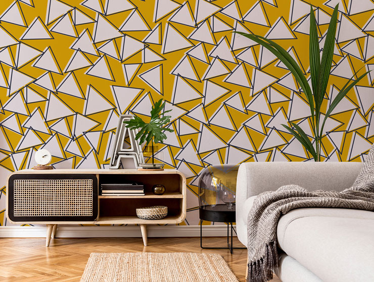 Wallpapers like this Mustard Triangles mural are perfect for creating a feature wall with. When you don’t have much space, a feature wall can be an easy way to add personality without overcrowding. If you want to highlight a mantelpiece or you wish to create a focal point in the room, opt for bold patterns with interesting shapes such as geometrics.
