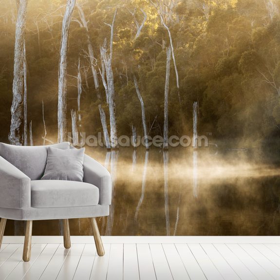 Create a feeling of calm and tranquillity in your home with this beautiful Karri Valley wallpaper. Watch the mist as it curls up from the still waters and embraces the trees by the side of the lake. See the sun rays tickle the treetops, waking them, ready for a new day.