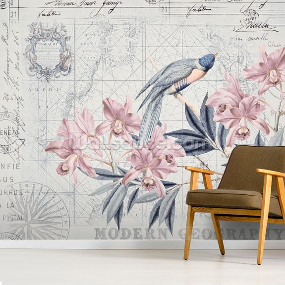 Enjoy this delicate mural design in any room in the home! Featuring carefully placed layers of florals, a bird and text, this stunning mural will create a showstopping feature wall.