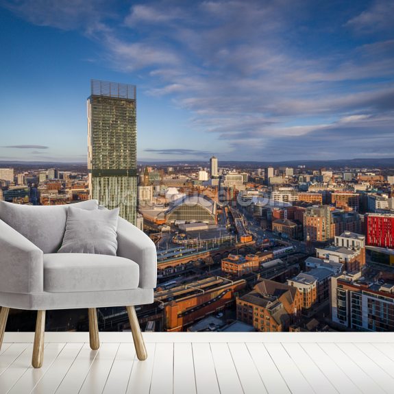Stunning Manchester City Aerial wall mural from Wallsauce. This high quality Manchester City Aerial wallpaper is custom made to your dimensions. Easy to order and install plus free UK delivery.