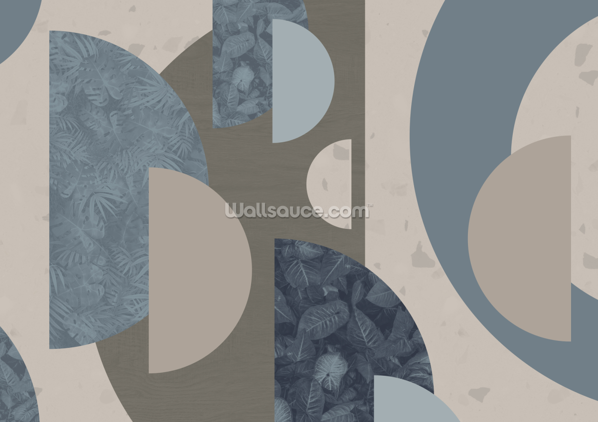 Bring style to your walls with this custom-made Blue Tropical Shapes wall mural from The Wallsauce Collection.