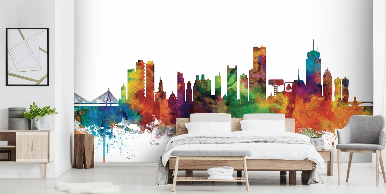 Featuring all of Boston’s iconic landmarks, this mural will suit any bedroom, living room, kitchen or office space. For a closer look at how Boston, Massachusetts Skyline might look in your room, why not order samples?