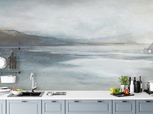 blue and green custom floral wallpaper mural called Cool Watercolor Floral by Carol Robinson for living rooms