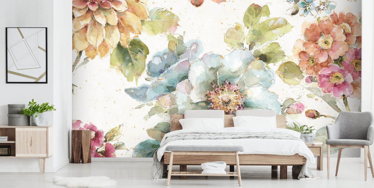 Bask in the beauty of nature with our Country Bloom botanical wallpaper mural by Lisa Audit.