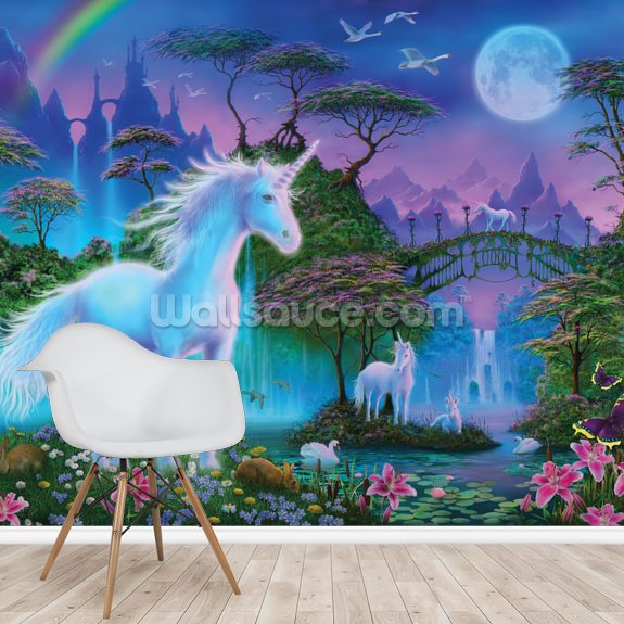 Send yourself into another world with this fantastical Unicorn Bridge wall mural! Design by Danny Flynn, this amazing unicorn wallpaper will certainly make your child’s dreams come true!