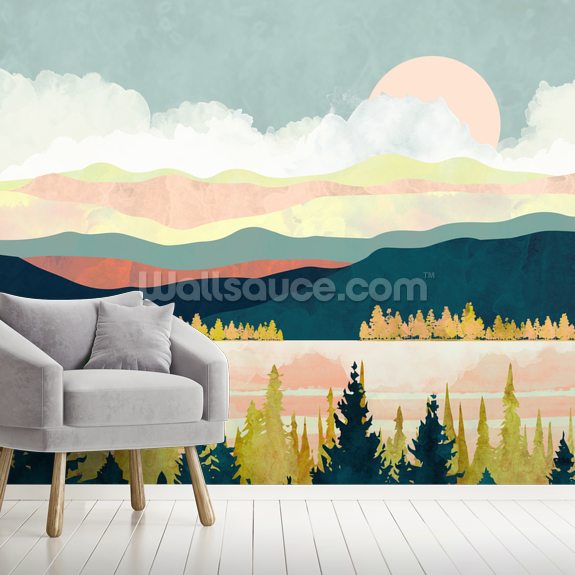Enjoy this pastel toned Lake Forest wallpaper in your home. So versatile, you can enjoy this landscape wallpaper in your living room, bedroom or baby's nursery!