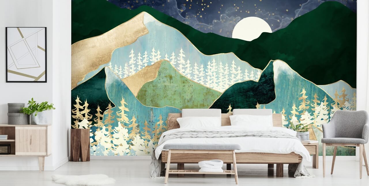 Adorn your walls with this custom-made Spring Night Vista wallpaper by SpaceFrog Designs.