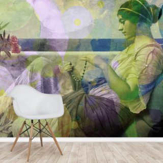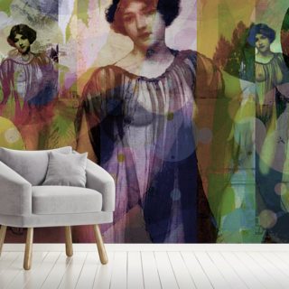 vintage portrait of a woman with modern colour layers wallpaper