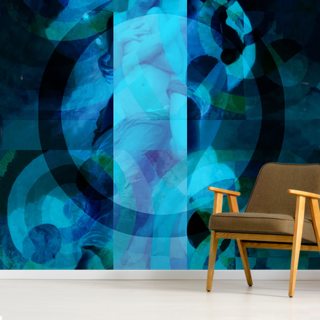 blue abstract art of angels wallpaper