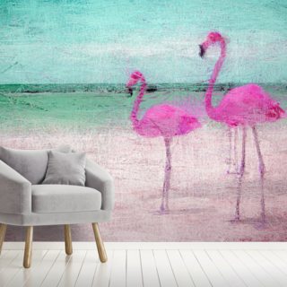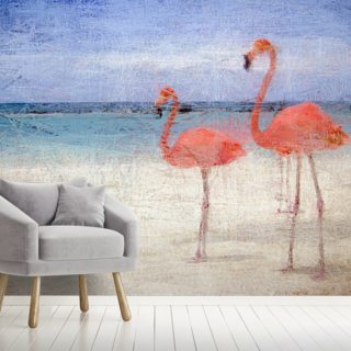 Painted Flamingos at the Beach Mural