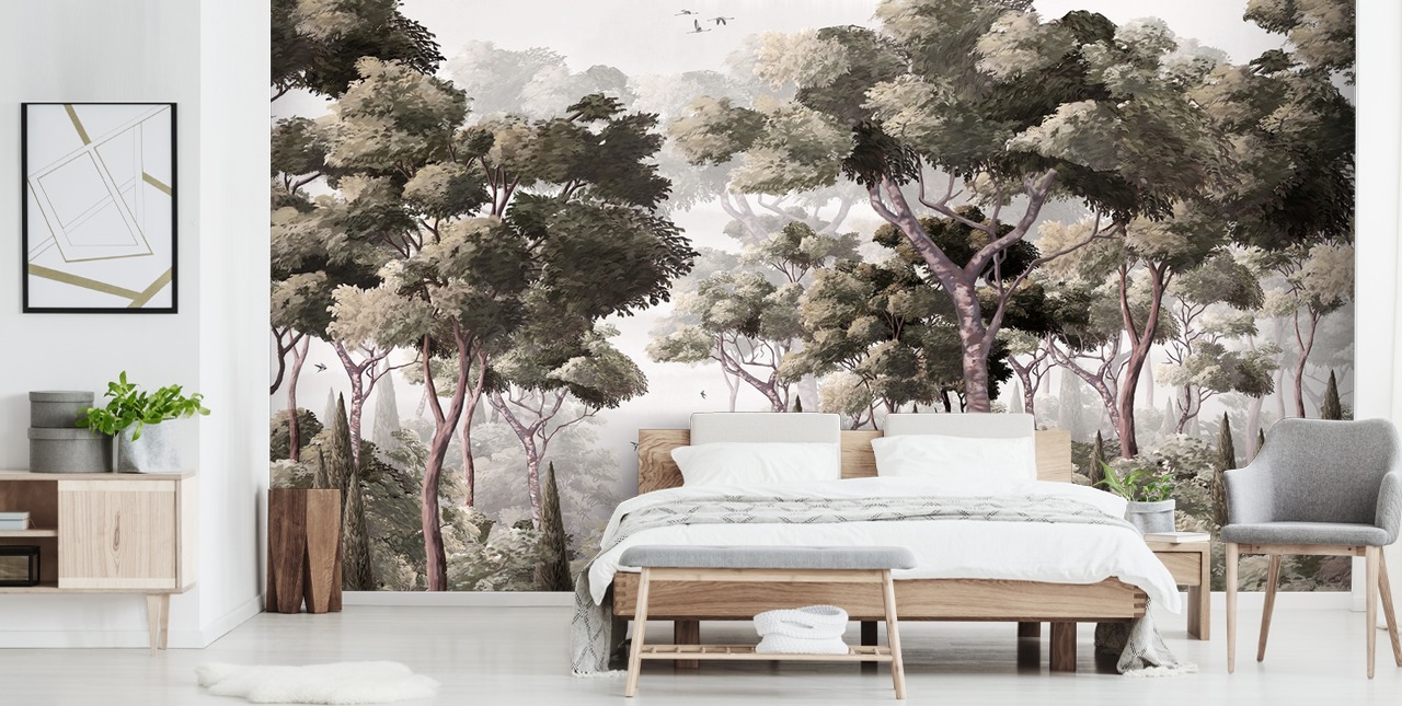 To order the Vintage Forest Landscape Gray wallpaper mural, simply enter your wall's dimensions and choose the material that best suits your style and decor. Remember, we recommend you add a little extra to your measurements so the mural can be trimmed to perfection.