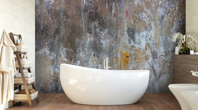blue and copper industrial wallpaper mural called Industrial Grunge for bedrooms, bars and kitchens