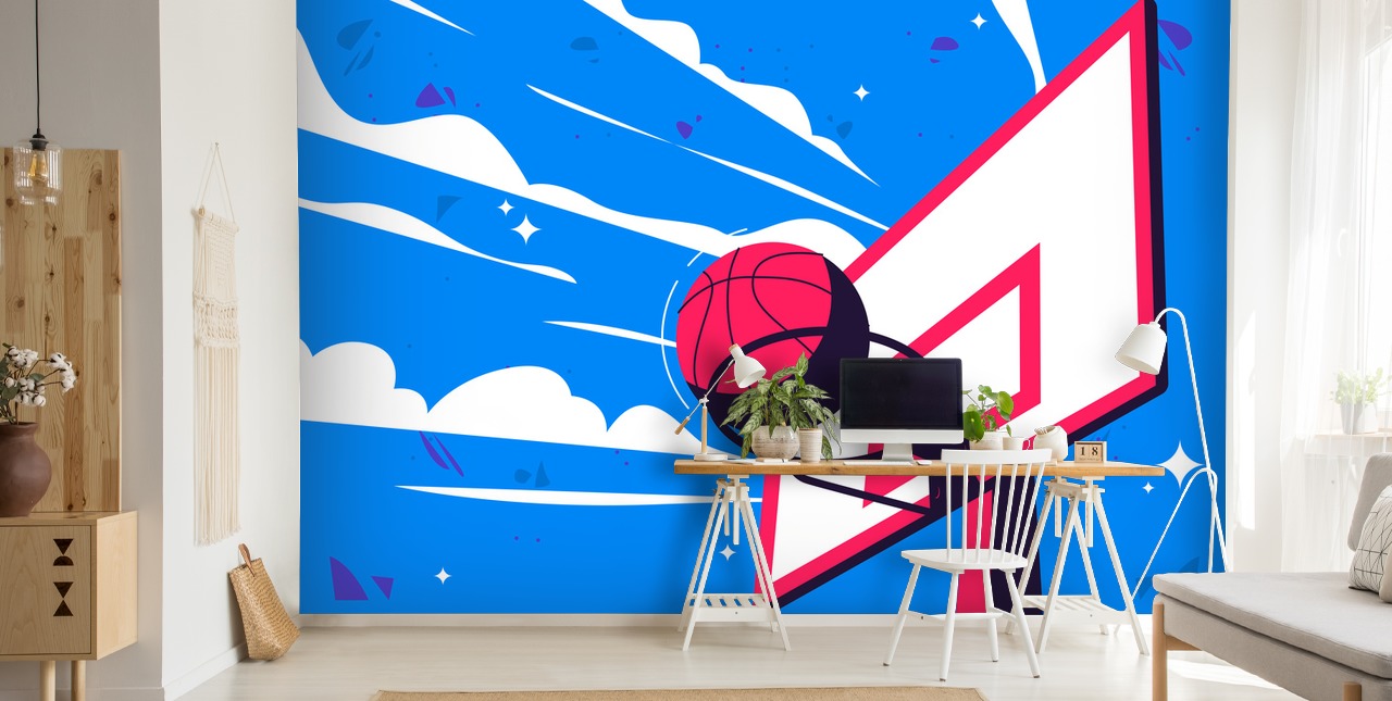 Bring your love of basketball to any room or space with this beautiful Basketball Hoop wallpaper mural at Wallsauce.
