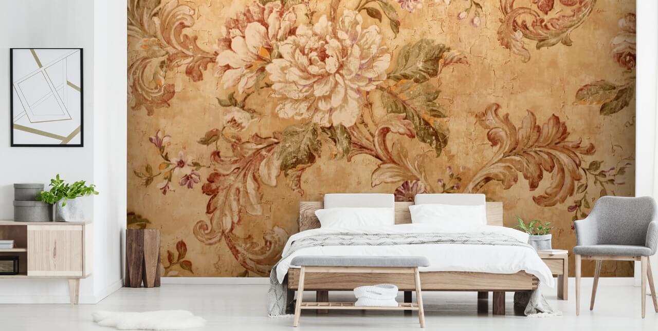 Bring a vintage feel to your room with this antique floral wallpaper mural. With its large flowers and delicate leaves, this vintage style wallpaper will look great in any room including your bedroom or lounge.