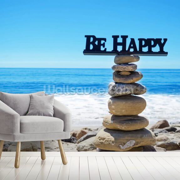 Feel happy every day with this cheerful Be Happy wallpaper. A unique beach wallpaper, we think that it would look beautiful in a wide range of rooms: bathroom, bedroom, living room and more!