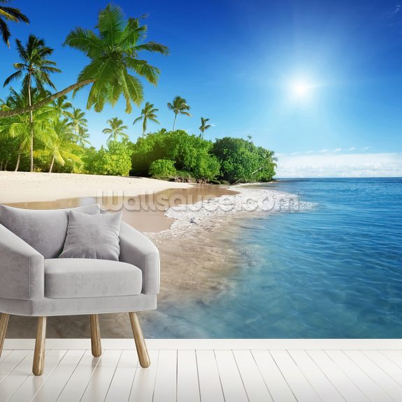 Have the beautiful views of the Carribean palms in your home or workplace with this stunning beach wall mural named Caribbean Palms Wall Mural. With its white sand beach, clear blue sea and evergreen green palms trees, this beautiful beach wallpaper will add warmth to any room.