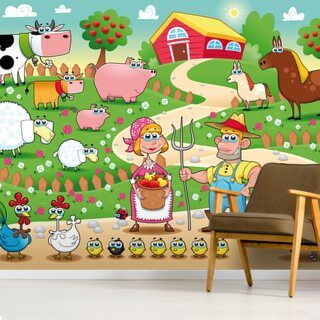 This piece would be perfect for a child's playroom, with its bright colors and upbeat characters. Pair this wall mural art with bright accessories and toys to heighten your child's imagination and creativity.