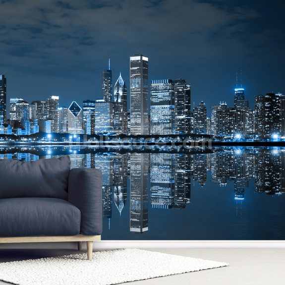 Chicago Downtown at Night Wallpaper Mural