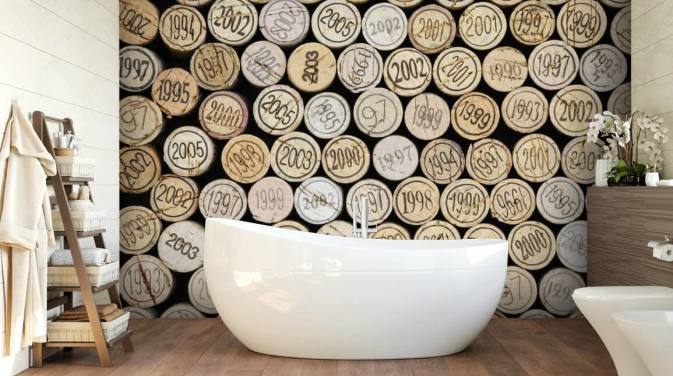 light brown customizable wine wallpaper mural called Wine Corks for kitchens and wine cellars