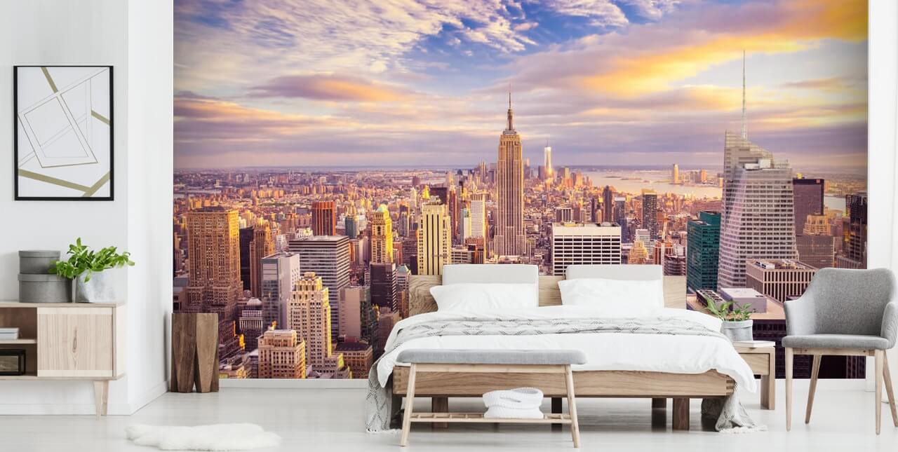 Stunning Midtown Manhattan Sunset wall mural from Wallsauce. Easy to order and install .