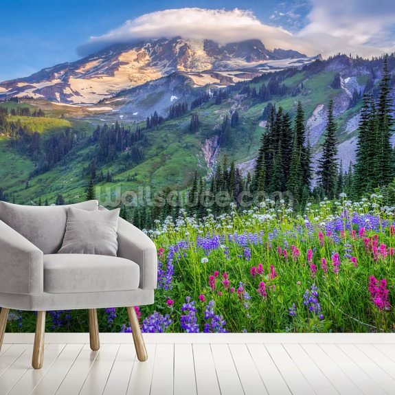 Install this custom-made Mt Rainier Wildflowers wallpaper mural.