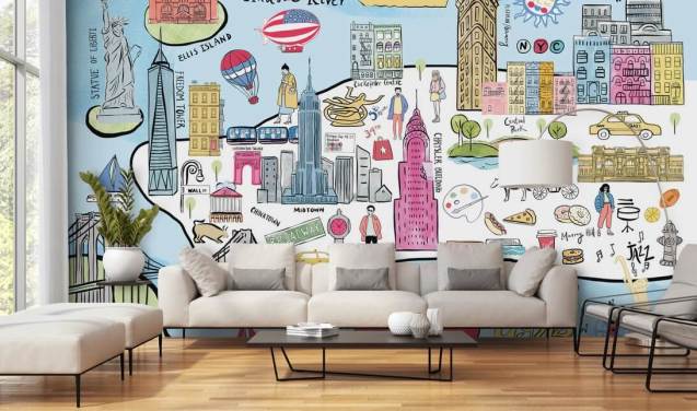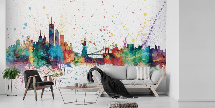 colorful new york wallpaper mural called New York City Skyline by Michael Tompsett