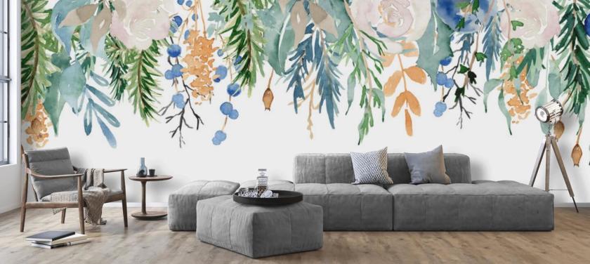 green and blue countryside wallpaper mural called Mountains Landscape for home offices