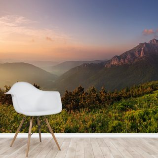 Adorn your wall with this blissful Purple World wallpaper mural. The gorgeous pink and purple sunset beautifully mirrors the wild heather flowers. Not forgetting the smoky blue mountains that calm and soothe the eye.