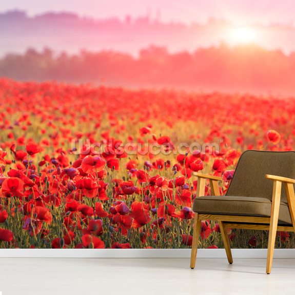 Beautiful and iconic, adorn your wall with this made to measure Red Poppy Sunrise wallpaper mural.