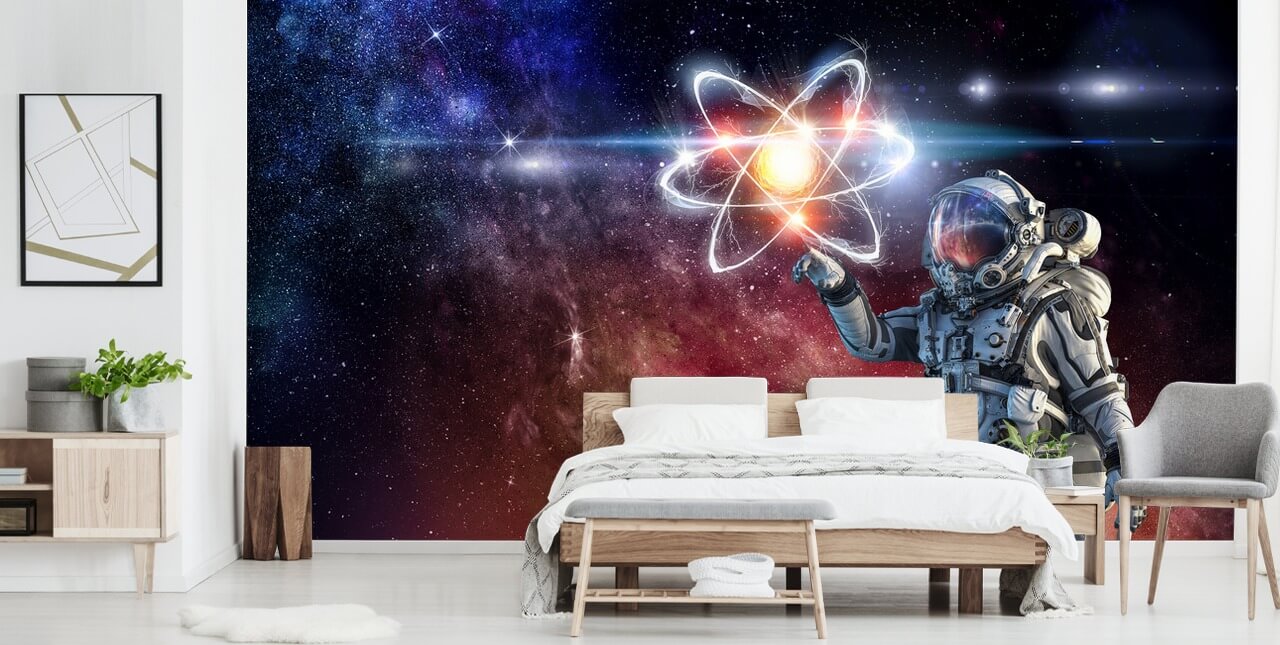 When it comes to choosing furniture for this space wallpaper, why not choose a range of white or light grey furniture to mirror the colour of the astronaut’s suit? For even more of an effect, choose neon lighting for a space-like ambiance.