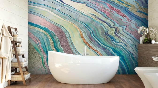 purple, blue and pink customizable watercolor marble wallpaper mural called Pink Swirl for bedrooms and bathrooms