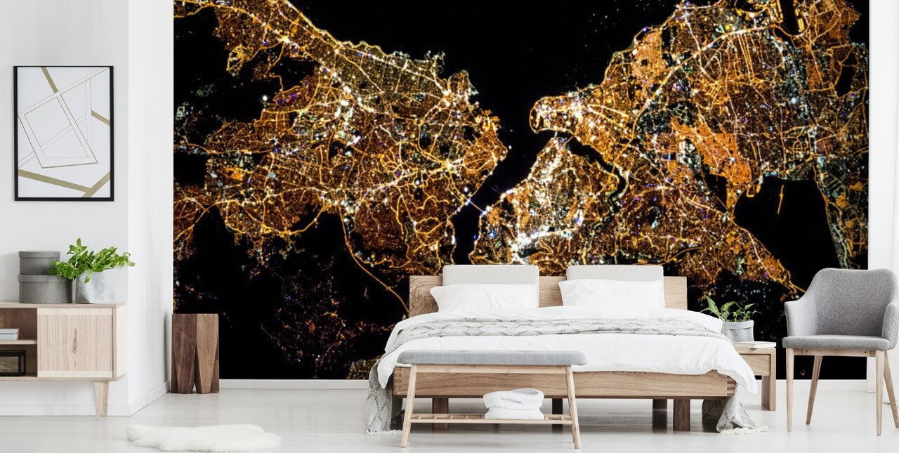Create a striking feature in your home with this gorgeous Aerial View of Istanbul wallpaper. With beautiful tones of gold and black, this cool map wallpaper will create a dark and stylish signature wall in a room.