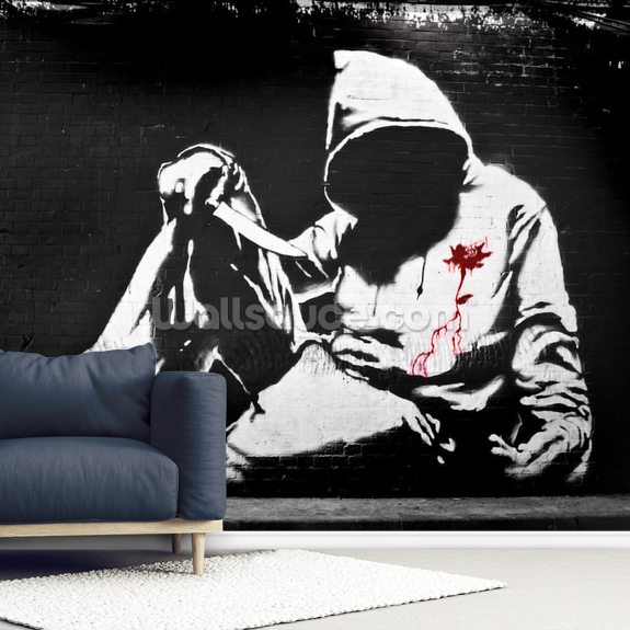 If you love street art, you'll love this epic Banksy Hoodie with Knife Graffiti wallpaper. Custom-made to fit your wall perfectly.