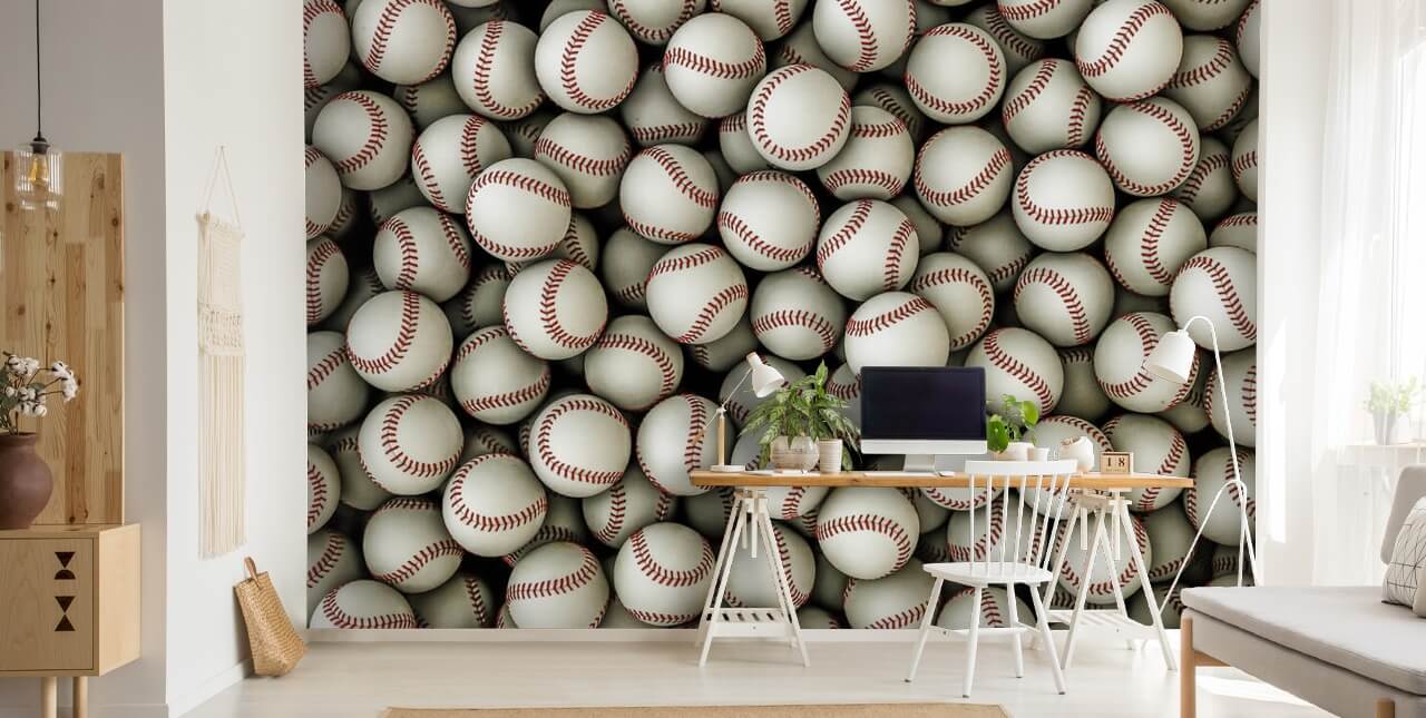 Are you a fan of baseball? Install this custom-made Baseballs Background wallpaper mural in your home.