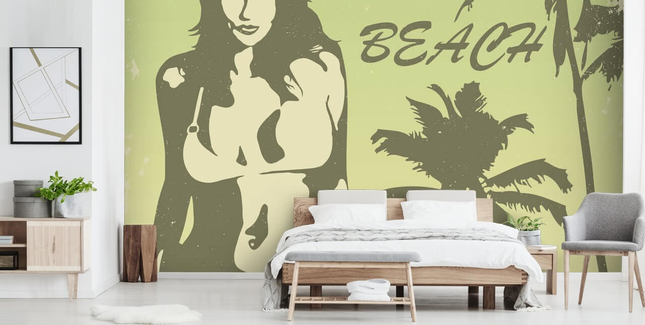 Feel those summer vibes all year long with this custom-made Beach Retro wallpaper mural from Wallsauce.com! With a vintage feel, this beach poster wallpaper will give any room a retro edge! Ideal for lots of living spaces, this retro wallpaper would look especially amazing in a bedroom! Paint the surrounding walls with an off-white shade and have furniture and décor with a tinge of green- similar to the shade in the design.