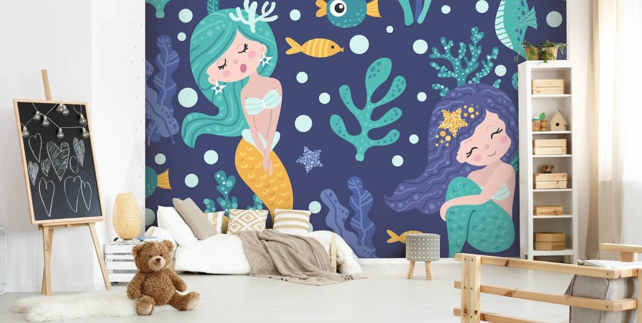 Give your child’s room a makeover with this beautiful Blue Coral Mermaids wall mural. Completely transform their bedroom into a mermaid paradise!