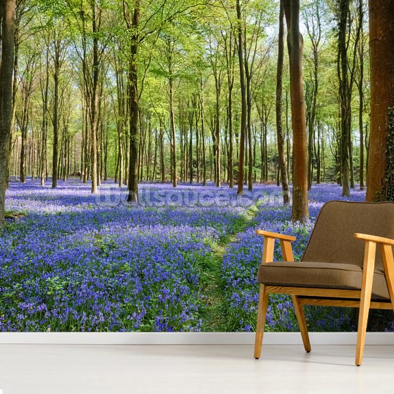 Stunning Bluebells in Wepham Woods Wallpaper mural from Wallsauce, will transform your room into a natural beauty.