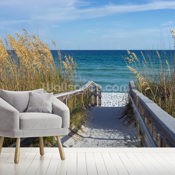 Stunning Boardwalk Wallpaper Mural from Wallsauce, will bring the sun and sea to your room.