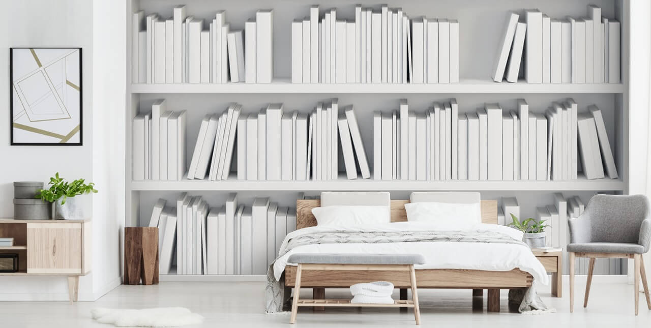 Stunning Bookcase with White Books wall mural from Wallsauce. This high quality Bookcase with White Books wallpaper is custom made to your dimensions. Easy to order and install .