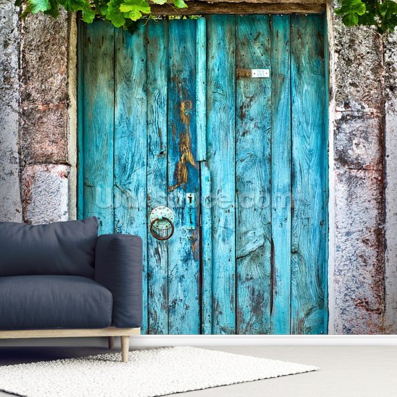 Bright Blue Wooden Door Wall Mural, Custom Made just for you