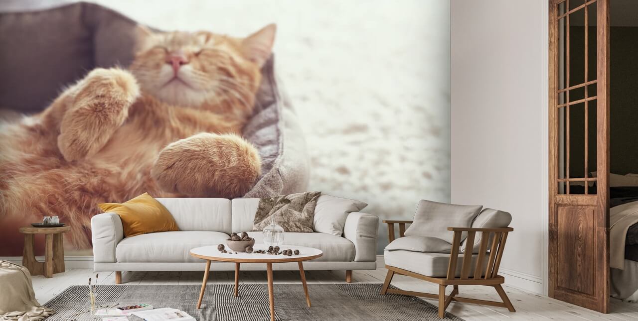 Cute Cat sleeping wall mural from Wallsauce. This high quality Cat sleeping wallpaper is custom made to your dimensions. Easy to order and install .