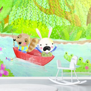 illustrated woodland and creatures wallpaper for kids bedroom