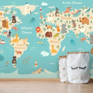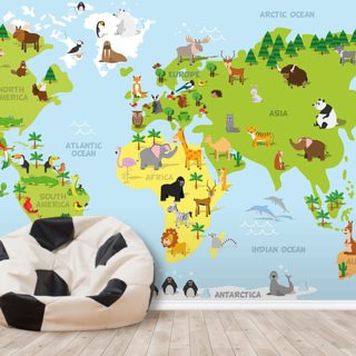 nursery animal world map wallpaper