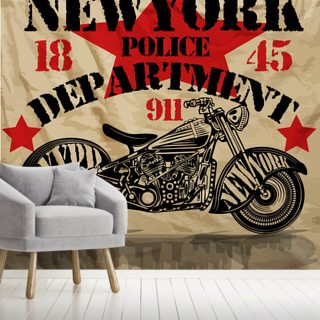 Make a statement with Chrome Chopper, a mural featuring a gleaming, large chopper motorcycle in striking detail. Its polished chrome and classic design bring a sense of power, freedom, and attitude to any space.