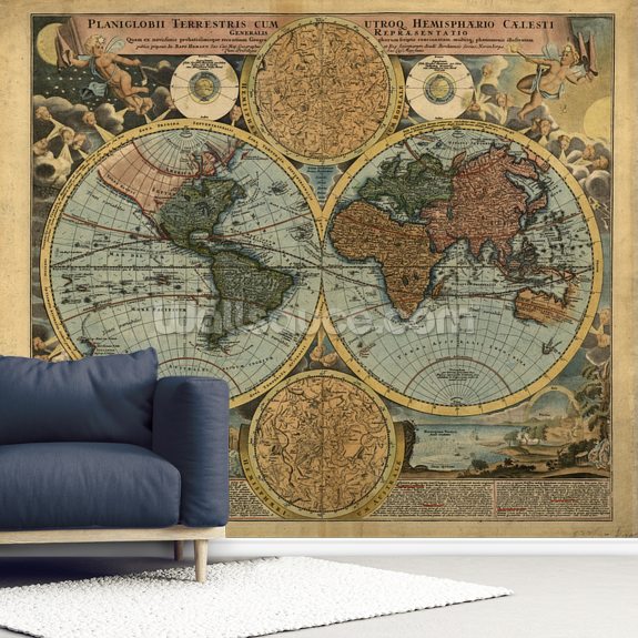 Have a classic old world map on your wall with our colour old map wallpaper. With mini globes and topography maps included, you'll feel more educated on old world geography. Also, the different equator lines that are included on these maps add interesting details and interest.