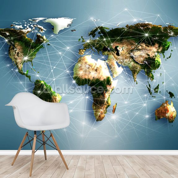 Perfect for an international business' office, install this custom-made Communications World Map wallpaper.