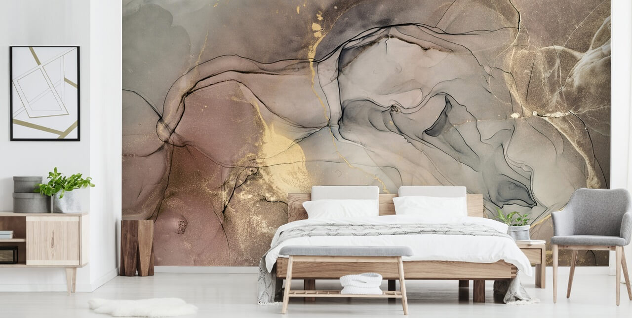 This darker hued marble effect wallpaper is great if you want a design that isn’t too dark. The shades of grey and dark purple are not over facing and the touch of gold colours bring a lightness to the overall design.