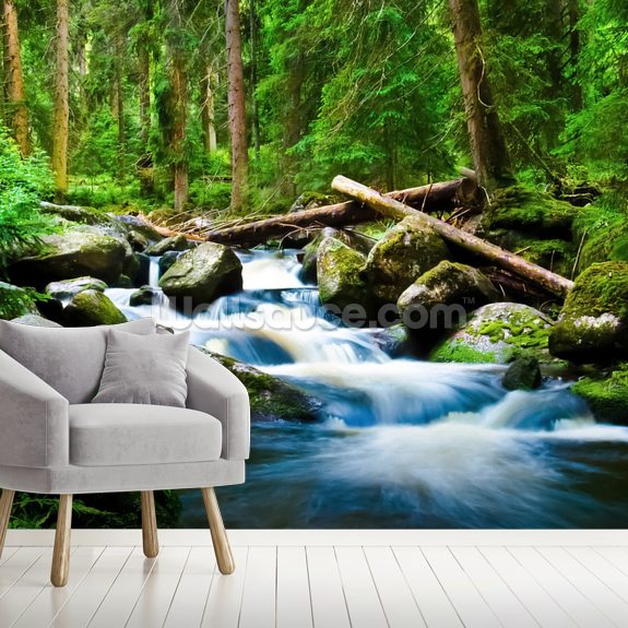 Feel serene with this beautiful Deep Wood wall mural in your home. With luscious shades of green to the cooling blues of the rolling river, this stunning tree wallpaper will make you feel like you are outdoors, enjoying the fresh air!