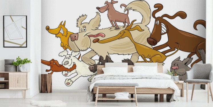 cartoon dogs of all breeds running wallpaper