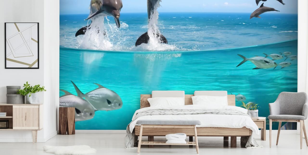 Transform your home with this gorgeous Dolphins Playground wallpaper! Great for all sea life fans, this ocean wall mural will make you feel like you’re always at the beach or snorkelling deep into the blue waters.